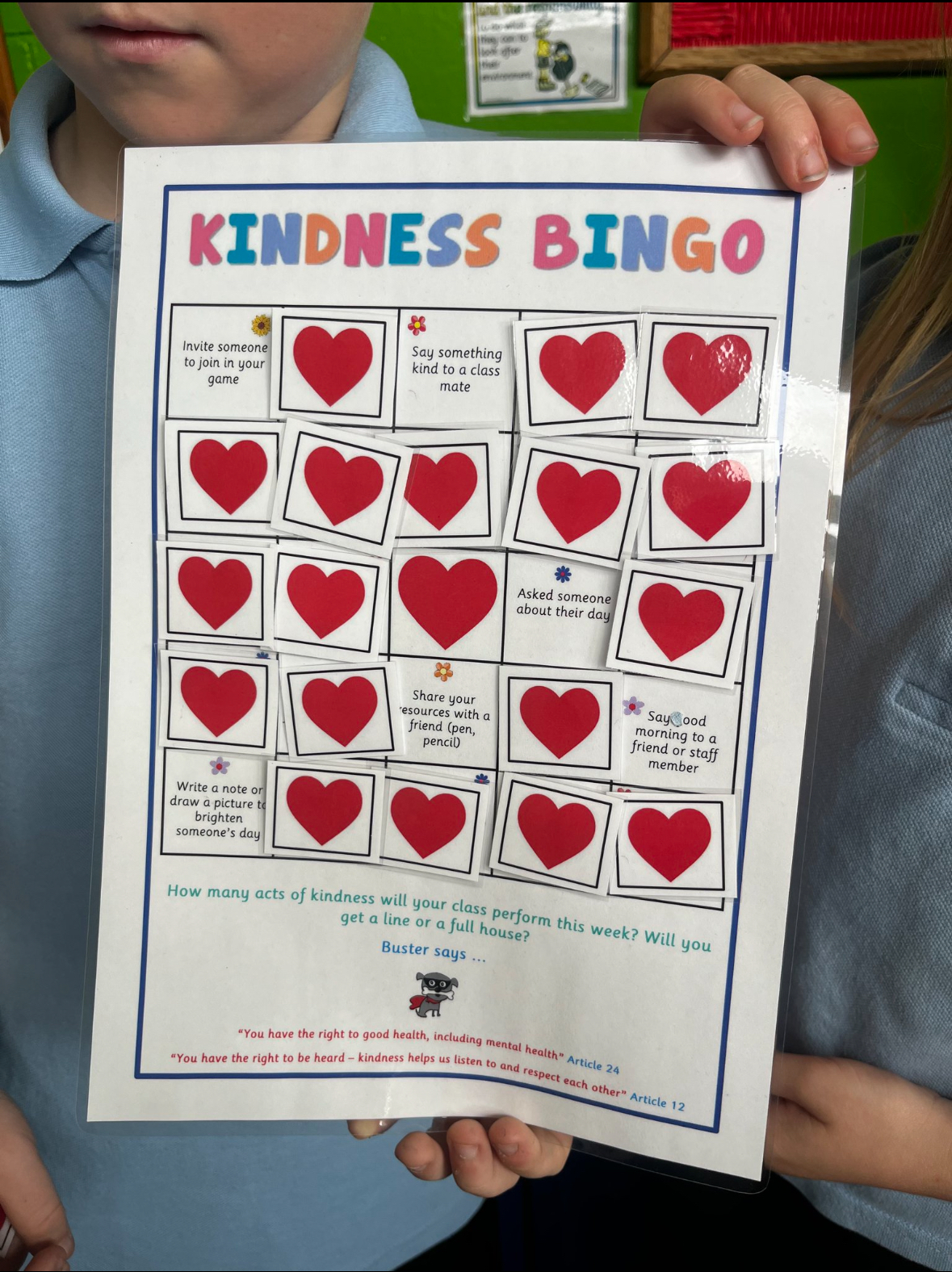 On Monday, 6th October, our Healthy Heroes led a fantastic assembly in celebration of World Mental Health Day. They introduced our whole-school kindness theme with enthusiasm, inspiring everyone to spread positivity. As part of their initiative, they designed thoughtful Kindness Bingo Boards and gave one to each class, encouraging everyone to take small, meaningful actions to make others feel valued and supported throughout the school. It was a wonderful start to our kindness journey.
